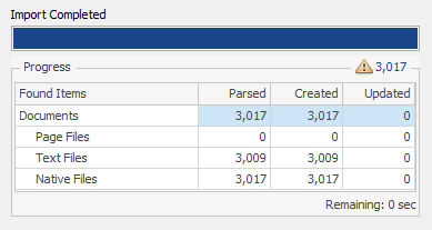 On the progress page – we have added a lot more detail. In prior versions, we only showed the number of documents imported or updated. Now you can see the number of documents parsed (found) in the delimited load file, the number of new documents being added, and the number of documents updated (if linked successfully to an existing document). The counts for native and text file references being created or updated is also new. We expect this will especially help speed up certain QC checks during import.